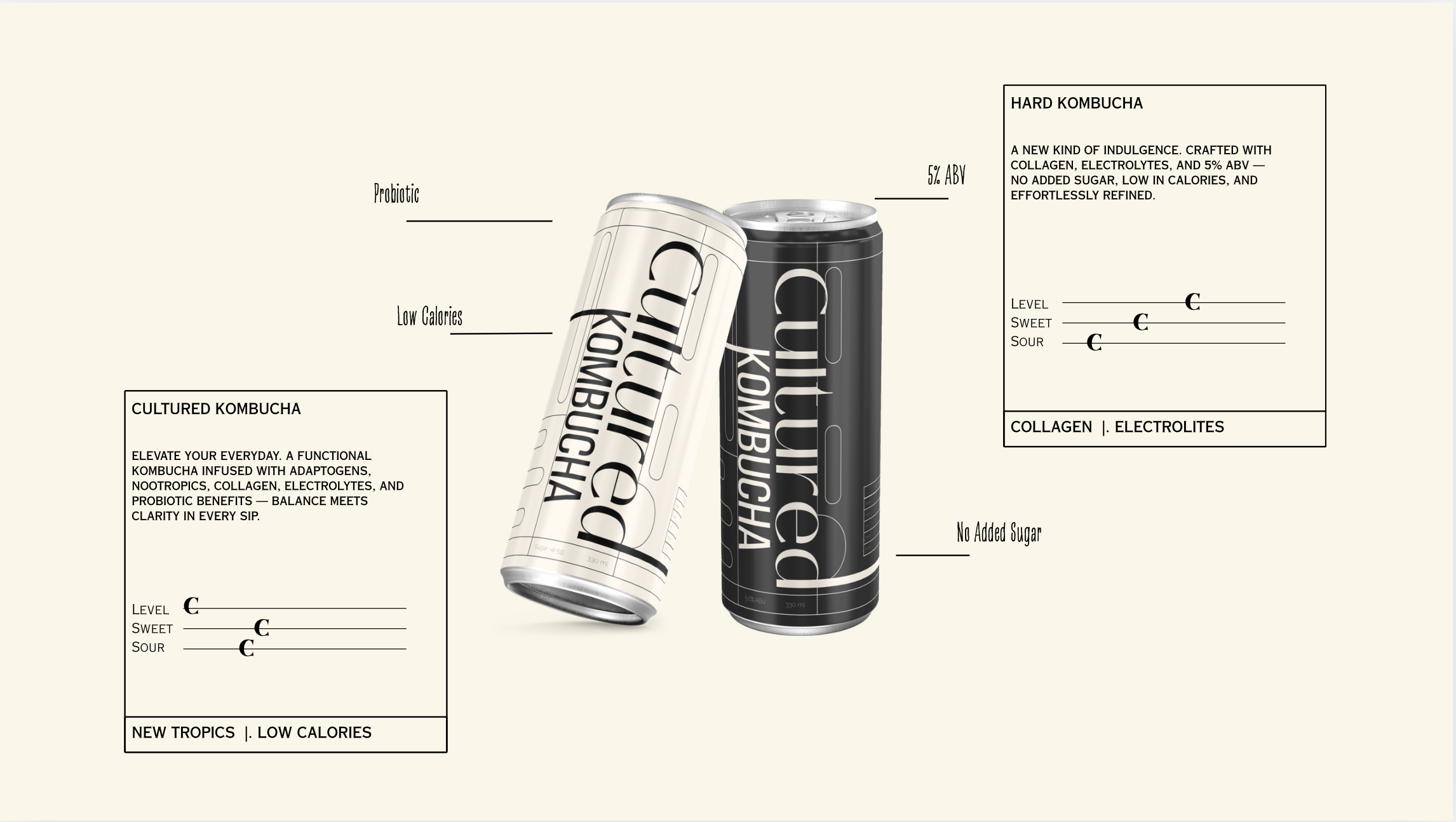 We’re redefining what it means to drink well. Cultured Kombucha bridges wellness and refinement through intelligent formulation and clean design. Each blend is engineered for balance infused with adaptogens, nootropics, collagen, electrolytes, and probiotics to support focus, recovery, and clarity.